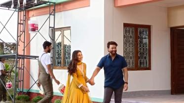 White kaash (catkin) flowers cover miles of lands while fluffy clouds hover in the blue sky above — such scenery announces the arrival of Autumn in Bangladesh. On one such beautiful afternoon, I was at a shooting spot at the Meradia area of Dhaka’s Banasree, where I came across popular stars Shakib Khan and Nusraat Faria. They were shooting for a television commercial under the scorching heat. The production is directed by Samiur Rahman.