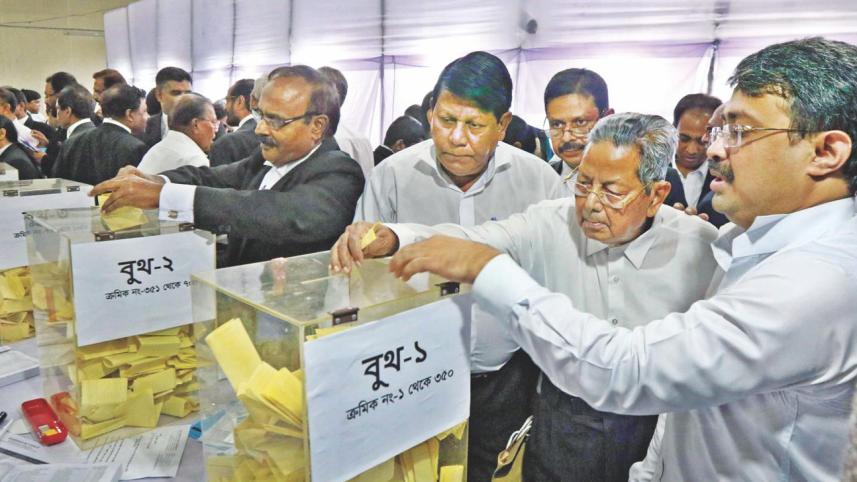 Some SC lawyers said the main contest would be between two panels -- the ruling Awami League-backed Sammilito Ainjibi Samannoy Parishad (SASP) and BNP-backed Jatiyatabadi Ainjibi Oikya Panel (JAOP).