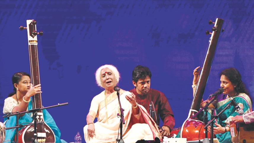Dr Prabha Atre, another shining star in the world of classical music, then made her debut at the stage of the world's biggest festival of classical music. The 84-year-old artiste performed an evocative Khayal in Raga Shyam Kalyan.