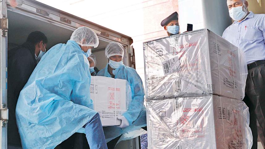 Except Dhaka, Narayanganj and Gazipur, the government sent 50 lakh vaccine jabs, purchased from Serum Institute of India, to 61 districts by Sunday for the mass inoculation campaign against Covid-19.