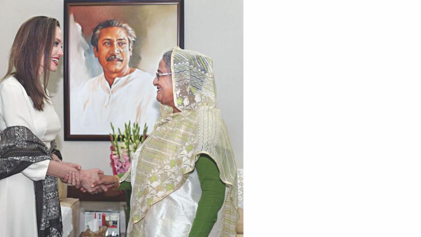 Jolie described Hasina as an “example-setting leader” in the world for providing shelter to huge displaced Rohingyas in Bangladesh.