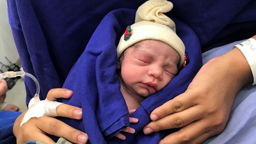 After nearly 36 weeks a baby girl weighing 2.5 kilograms (about six pounds) was delivered via caesarean section.