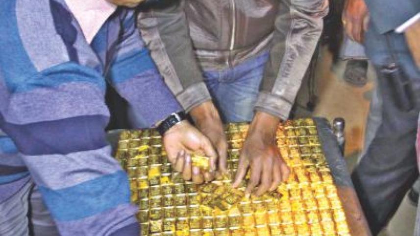 Law enforcers, however, suspect one Abu Ahmad of smuggling the bars and keeping those in a room rented as a shoe storehouse at Reazuddin Bazar, sources at the Detective Branch of police said.