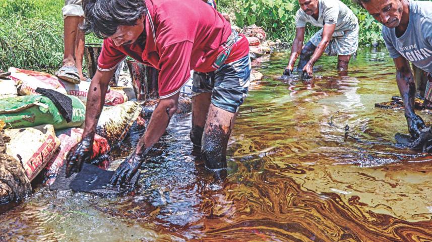Oil Spill Into Canal: Admin, locals save Halda from possible disaster