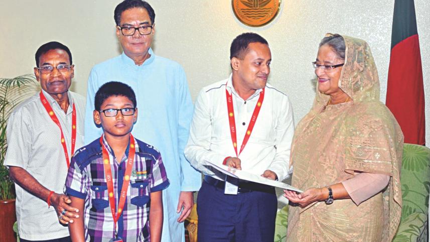 The premier handed over the appointment letter for the post of assistant officer of NRB Global Bank to Basudeb, son of Jharna Rani, at the Prime Minister's Office yesterday.