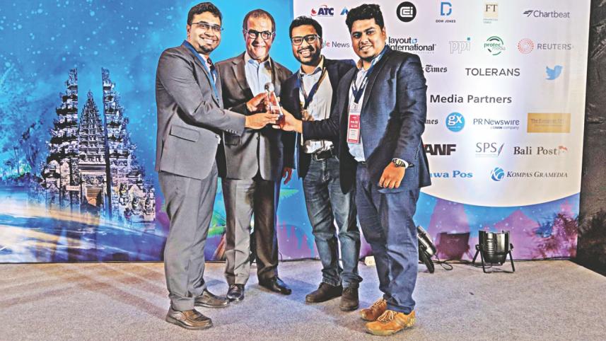 WAN-IFRA handed over the award to the representatives of The Daily Star during the Publish Asia programme yesterday in Bali at the Westin Resort Nusa Dua.