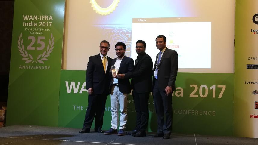 The award giving ceremony was held yesterday at ICT Grand Chola in Chennai, India. Md Tajdin Hassan, head of marketing, and Shuvashish Roy, digital marketing manager of The Daily Star, received the awards.