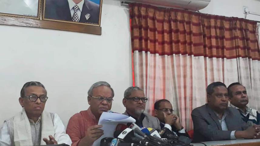 Ruhul Kabir Rizvi, senior joint secretary of BNP at a press briefing in Naya Paltan office of the party on Thursday, December 27, 2018. Photo: Collected