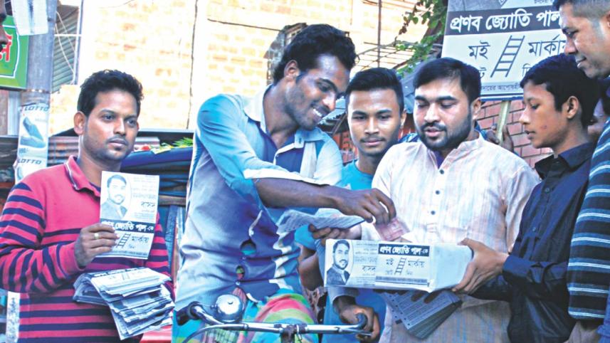 Carrying leaflets and holding a box to collect money, the candidate and his supporters are conducting electoral campaign at Madina Market, Amberkhana, Lakkatora Tea Estate and some other areas of the city, and the Sadar upazila.