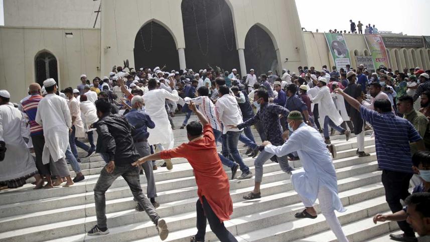 Immediately after Jummah, many demonstrators started chanting slogans against Indian Prime Minister Narendra Modi's arrival in Dhaka near the south gate of the mosque, prompting police to fire rubber bullets and charge batons on them, reports UNB.