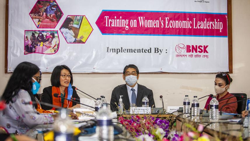 "What impressed me the most is the level of coordination and cooperation between UN Women, BNSK, GoB and Japan Government. Japan came out with the concept of 'Human Security' that focused on empowerment and protection. This initiative is a good example of this concept where we are working to give them protection through creating income sources and empowering them through building their capacities," said the ambassador.