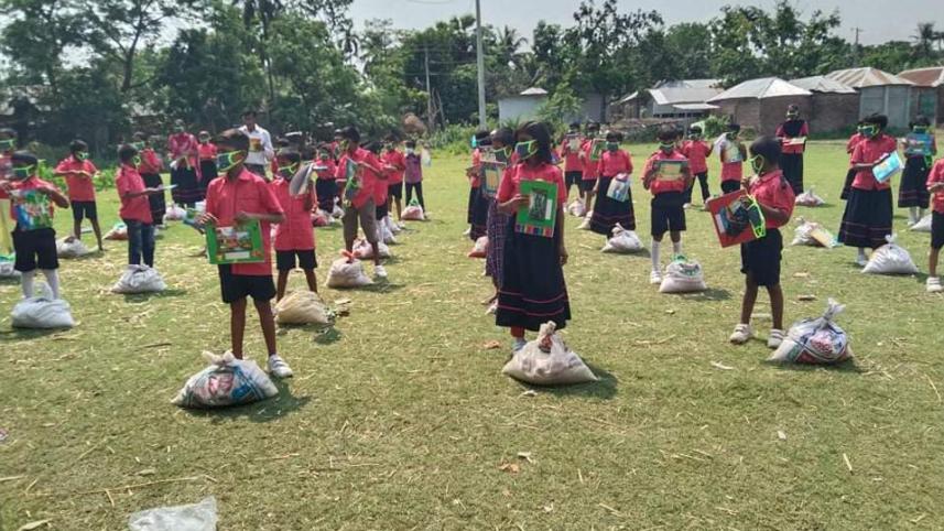 This year, the relief has been distributed among the students and their families of five schools in Dhaka -- Alok Shikkhaloy, Sohag Swapnadhara Pathshala, PSD Peyarabag School, PSD Nandipara School, and Imperial Hope School -- and one in Jhenaidah -- Laksmipur Shimanto Bajar Primary School.