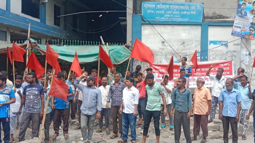 Several hundred workers from National Chemicals Manufacturing Company Limited are staging demonstrations in front of the factory in Gazipur city's Barabari area since 8:00am today demanding wage arrears for five months.