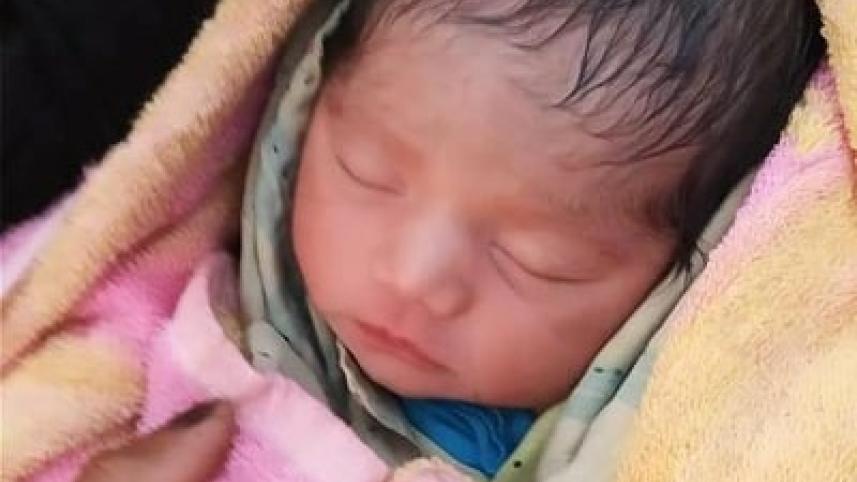 After walking for two kilometres along the riverbank, the couple landed on a trawler at noon and from there at a char in the river. From there they set off on foot. As Surma's labour pain started, villagers came forward to help them, said Nahid.