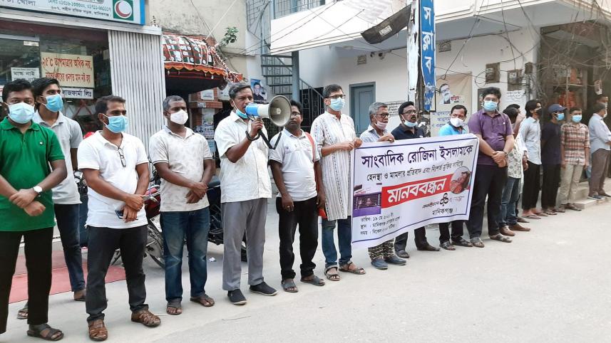 People of different walks of life in Manikganj formed a human chain today protesting the harassment of Prothom Alo's Senior Reporter Rozina Islam, who was arrested on Monday in a case filed under the Official Secrets Act, 1923.