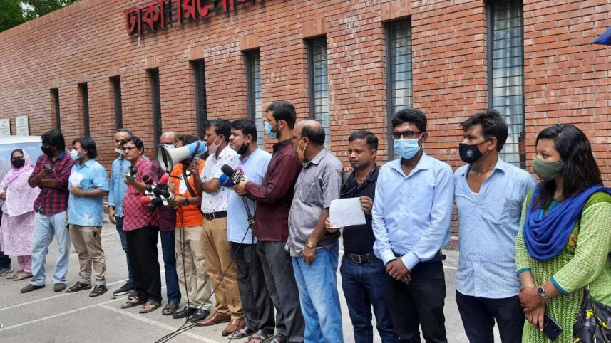 In Rajshahi, journalists gathered at Shaheb Bazar Zero Point with the same set of demands.