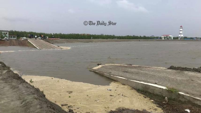 Water level around Noakhali's Bhasan Char rose this morning due to sporadic rainfall since last night.