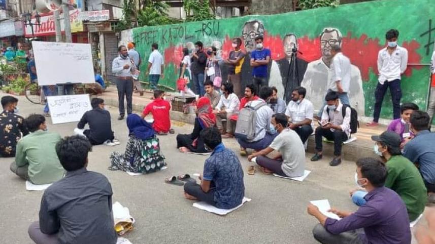 Symbolic class on street: Rajshahi students demand reopening of educational institutions