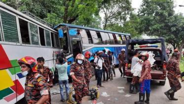Head-on collision of two buses leaves one dead, 13 injured in Rajshahi