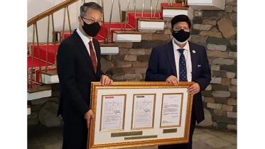 South Korean Ambassador Lee Jang-keun today handed over to Bangladesh Foreign Minister AK Abdul Momen a frame containing copies of historical documents that demonstrate the country’s official recognition of the newly independent Bangladesh on May 12, 1972.
