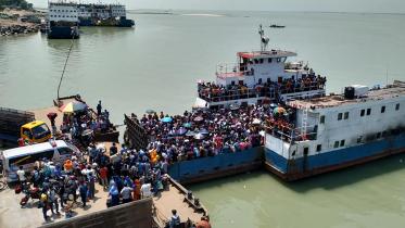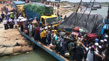 People desperate to go home for Eid-ul-Fitr were flocking at the Paturia ferry ghat since this morning despite suspension of ferry services.