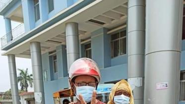 Ziaul Hasan of Jhalakathi, who carried an oxygen cylinder tied to his back while taking his Covid-19 infected mother to hospital on his motorcycle, has tested Covid-19 positive.