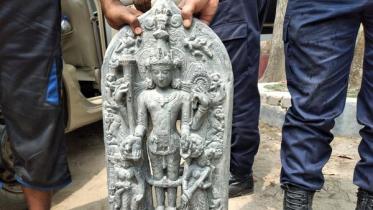 Touchstone statue of Lord Vishnu recovered from Thakurgaon