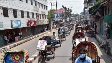 Rickshaw pullers in Barishal today staged a procession demanding relief and rations amid the “strict lockdown”, imposed to curb Covid-19 transmission.