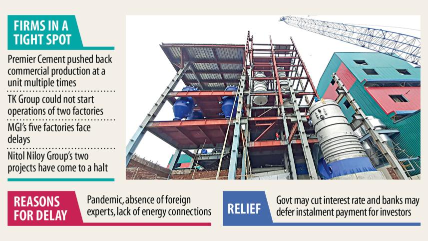 Nitol Niloy Group's two projects -- a passenger car assembling plant in Pabna and a tyre manufacturing factory in Kishoreganj -- have been delayed.