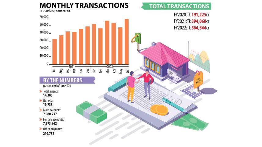 In fiscal year 2020-21, the amount passing through these accounts, opened through agent banking services, stood at Tk 3,94,068 crore.