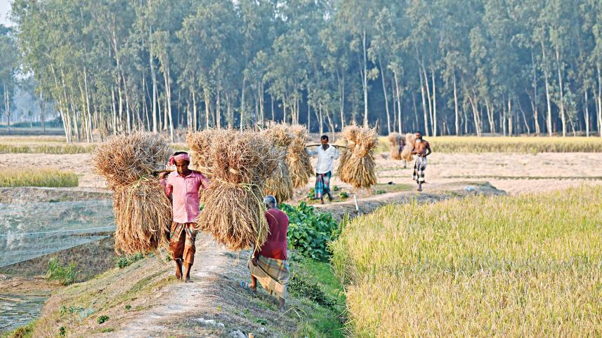 Nearly half a year ago, farmers harvested the dry Boro season paddy. Then they took home Aus season paddy in August. And now, they are harvesting rain-based Aman season paddy and preparing to cultivate the next season's Boro paddy.
