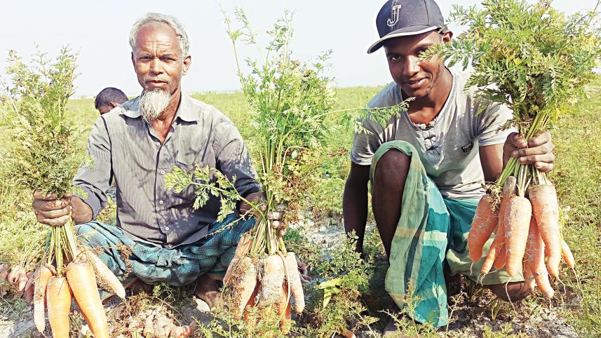 Afzal Hossain, a farmer of the same char, said he spent Tk 12,000 to cultivate carrot on one bigha of land to get 3,700 kgs of the crop, which were then sold for Tk 45,000.