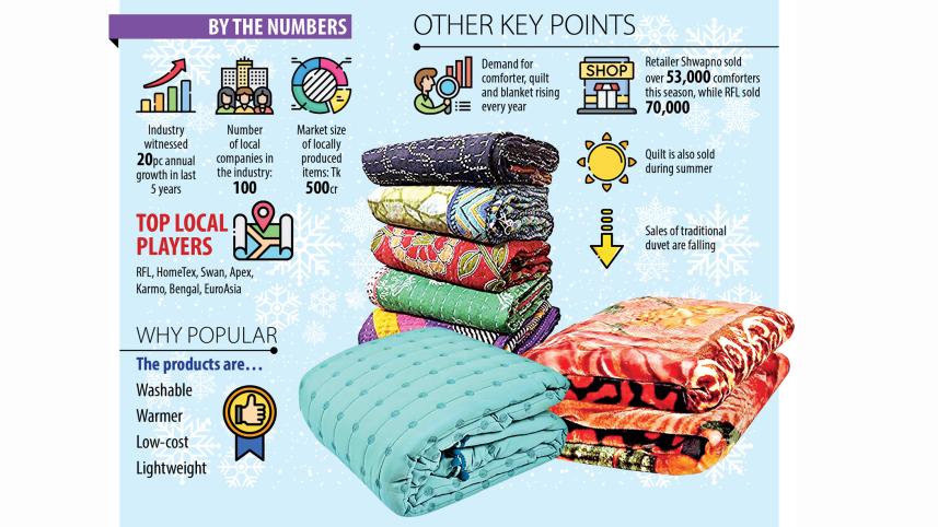 Consumers in Bangladesh are increasingly switching to comforters, quilts and blankets from traditional duvets in order to stay warm throughout the chillier winter nights and amid a change in lifestyle, drawing a substantial investments and big companies to the segment.