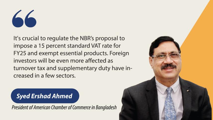 The AmCham president further said that the National Board of Revenue (NBR) had proposed a 15 percent standard VAT rate for FY25, which would potentially impact imported goods.