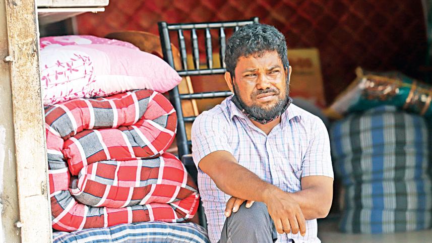 This is because his monthly income has plunged to Tk 8,000 from Tk 15,000. But he can only earn when makeshift shops remain open.