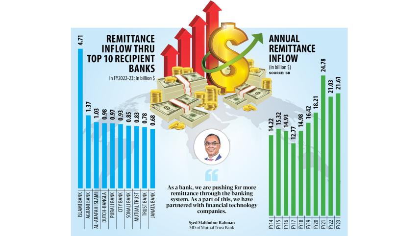 Speaking to The Daily Star, Syed Mahbubur Rahman, managing director of Mutual Trust Bank Ltd, said, "As a bank, we are pushing for more remittance through the banking system."