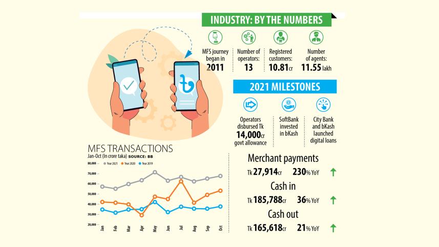 Mobile financial services, seen as a means of poverty alleviation and financial inclusion, fared well in 2021 in Bangladesh thanks to adaptation of the people to digital transactions amid the coronavirus pandemic, the government's gradual switch to digital system to disburse social safety net funds and inflow of foreign investment.