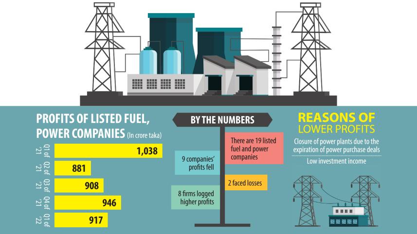 Profits of listed fuel and power generation companies altogether dropped in the January-March period of the current financial year of 2021-22 due to some power plants shutting down, an increase in the price of raw materials and a decrease in investment income.