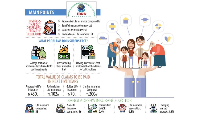 The Insurance Development and Regulatory Authority (Idra) has appointed four of its officials as observers at four life insurance companies for their failure to protect the interests of policyholders.