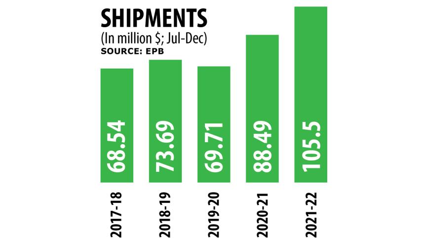 Medicines worth $105.50 million were exported in the July-December period, up from $86.33 million in the same period a year ago, data from the Export Promotion Bureau showed.