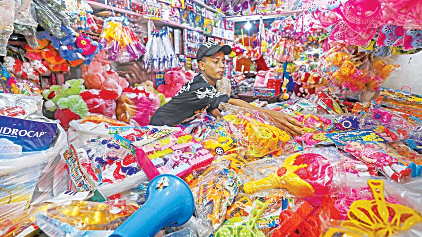 Toys are sold more or less year-round at Dhaka's Chawkbazar, the largest wholesale toy market in Bangladesh, but sales have been quite low this year.