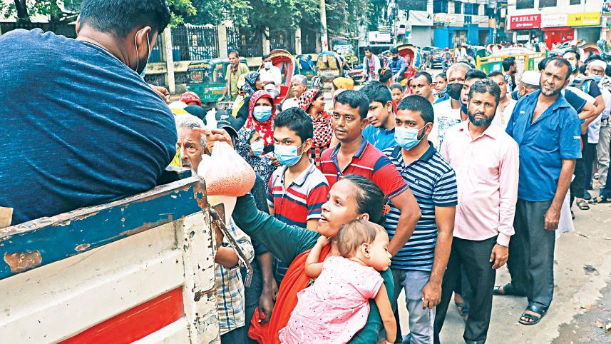 Braving heavy heat, she was standing in a long queue in the capital's Farmgate last week with hopes to buy some essential items at subsidised rates from a truck selling the products.