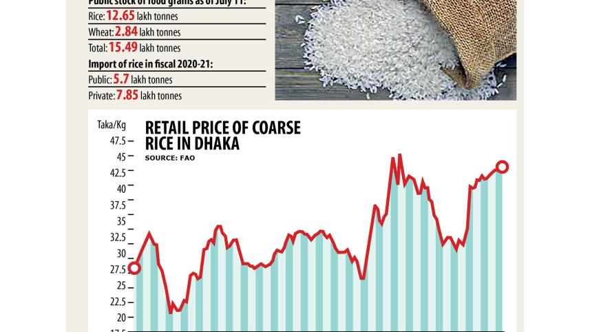 Coarse grain was traded at Tk 45.86 per kilogramme (kg) in Dhaka in June, up 2 per cent from a month ago, said data of the Department of Agriculture Marketing (DAM), which is used by the Food and Agriculture Organization.