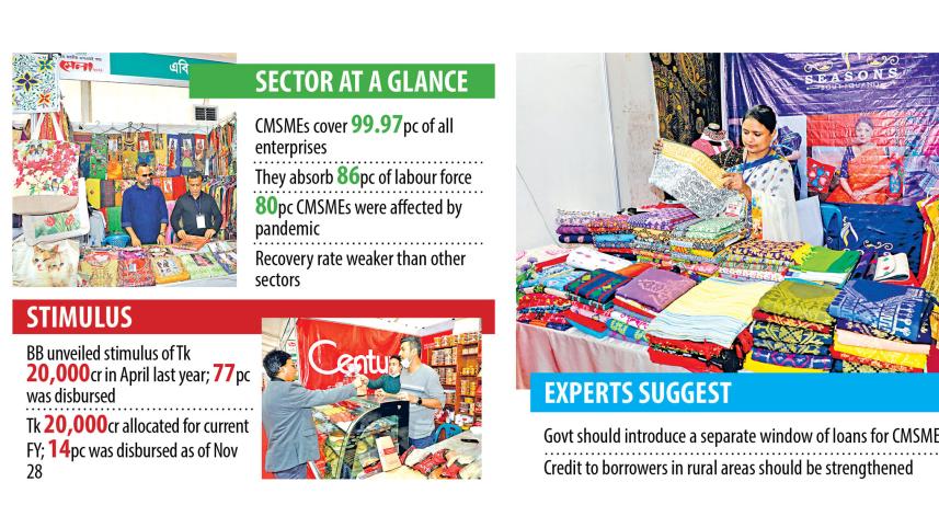 Many cottage, micro, small and medium enterprises (CMSMEs), which account for nearly a fourth of Bangladesh's gross domestic product, have not received financial support even though Bangladesh Bank unveiled a stimulus package worth Tk 20,000 crore for the sector in April last year.
