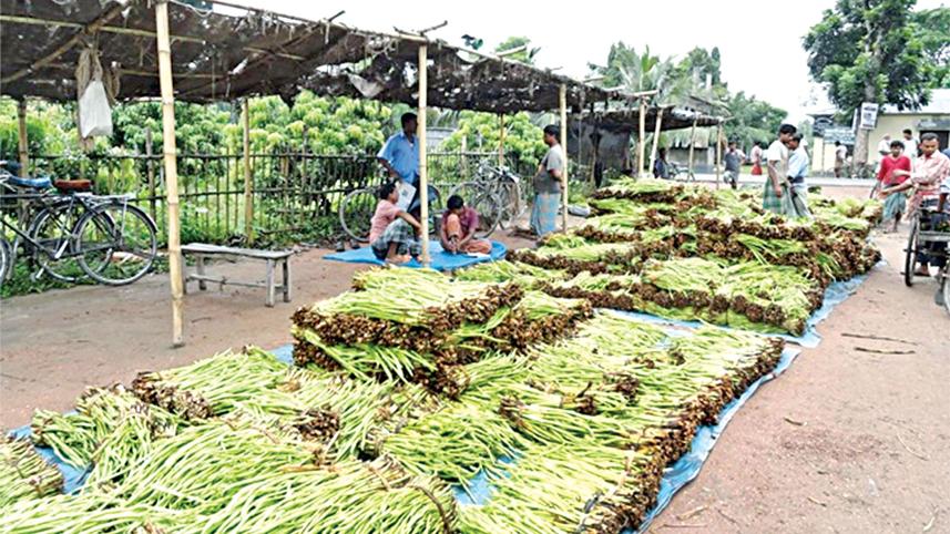 Taro stolon, which is "Kochur Loti" in Bangla, has turned into a boon for farmers of Panchbibi upazila of Joypurhat as its consumption has slowly grown locally and internationally over the years.