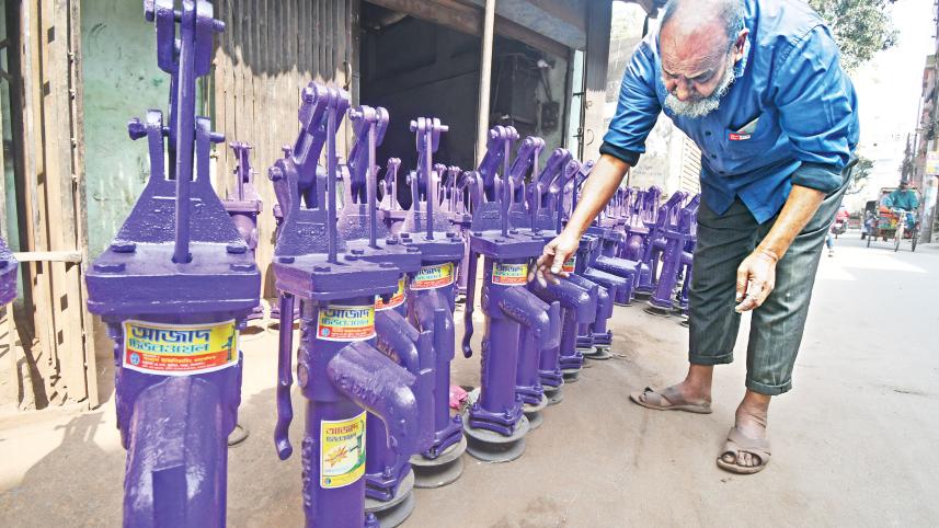 Md Nurul Alam, proprietor of the Messrs Soron Engineering Workshop, said he now produces 800 tube wells per month while he used to make 1,800 units per month two years ago.