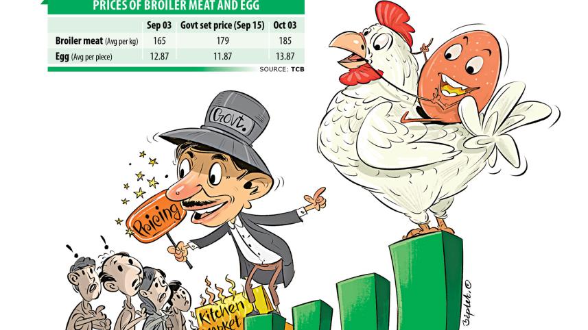 Prices of eggs and broiler chicken, two major sources of protein, prevailing in Dhaka's markets have long surpassed rates set by the interim government in September, putting pressure on consumers plagued with persistently high inflation.