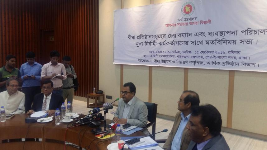 Earlier, the finance minister held a meeting with the managing directors and chairmen of the insurance companies at the NEC auditorium in Agargaon area of Dhaka this noon.