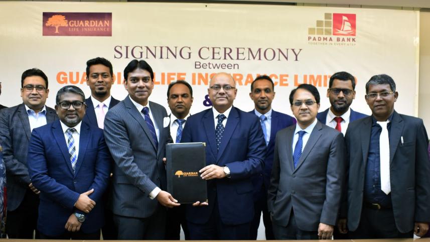 Sheikh Rakibul Karim, chief executive officer (current charge) of Guardian Life, and Tarek Reaz Khan, managing director and CEO of Padma Bank, signed the agreement on behalf of their companies.