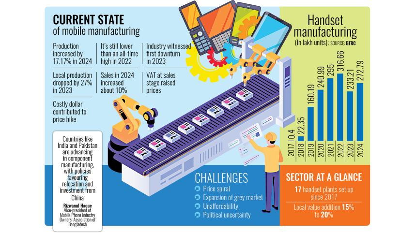 Handset production in Bangladesh increased by 17.17 percent year-on-year in 2024, but local assemblers faced significant challenges due to sluggish sales and the rapid expansion of the grey market.